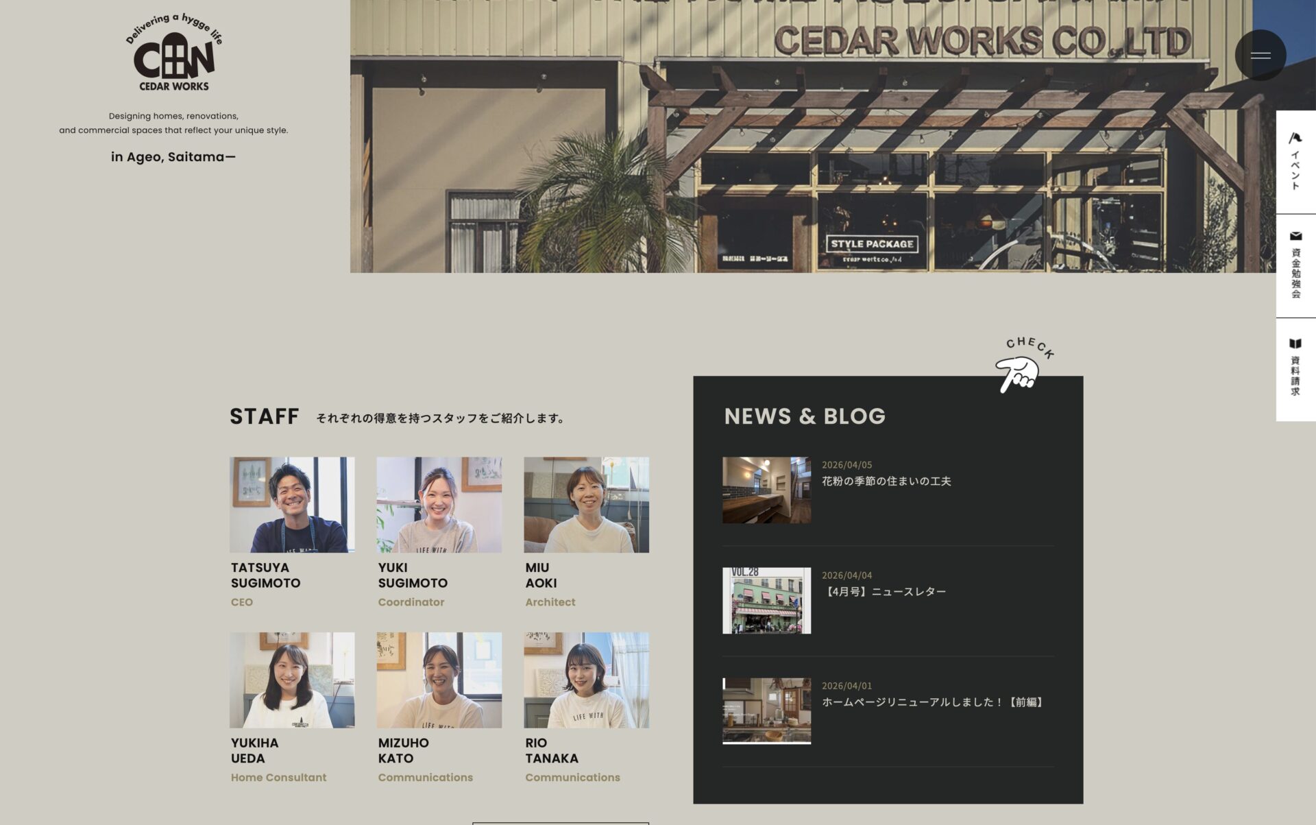 暮らしを大切にしているシダーワークスなので、