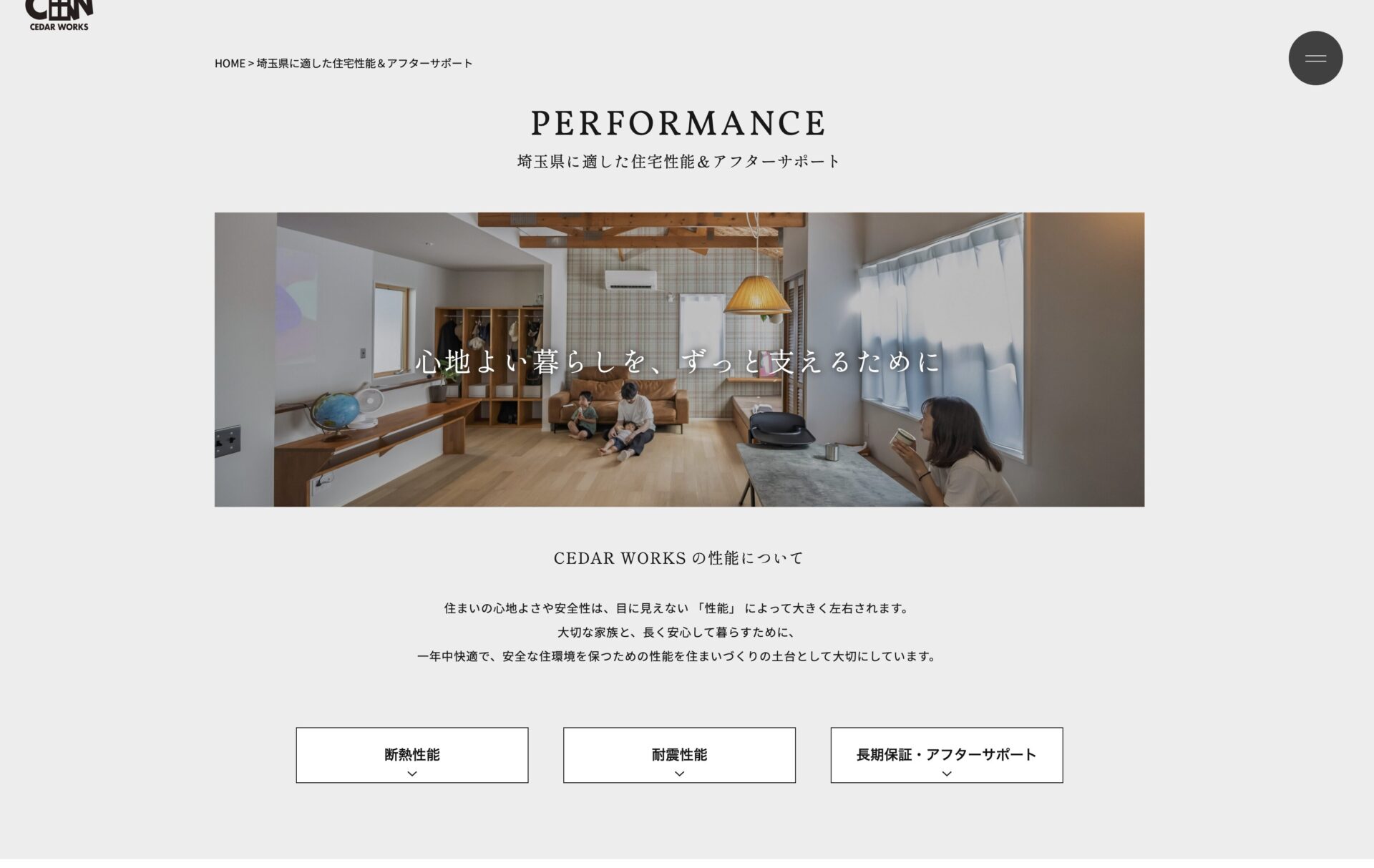シダーワークスの家は当たり前にある安心できる性能の上に