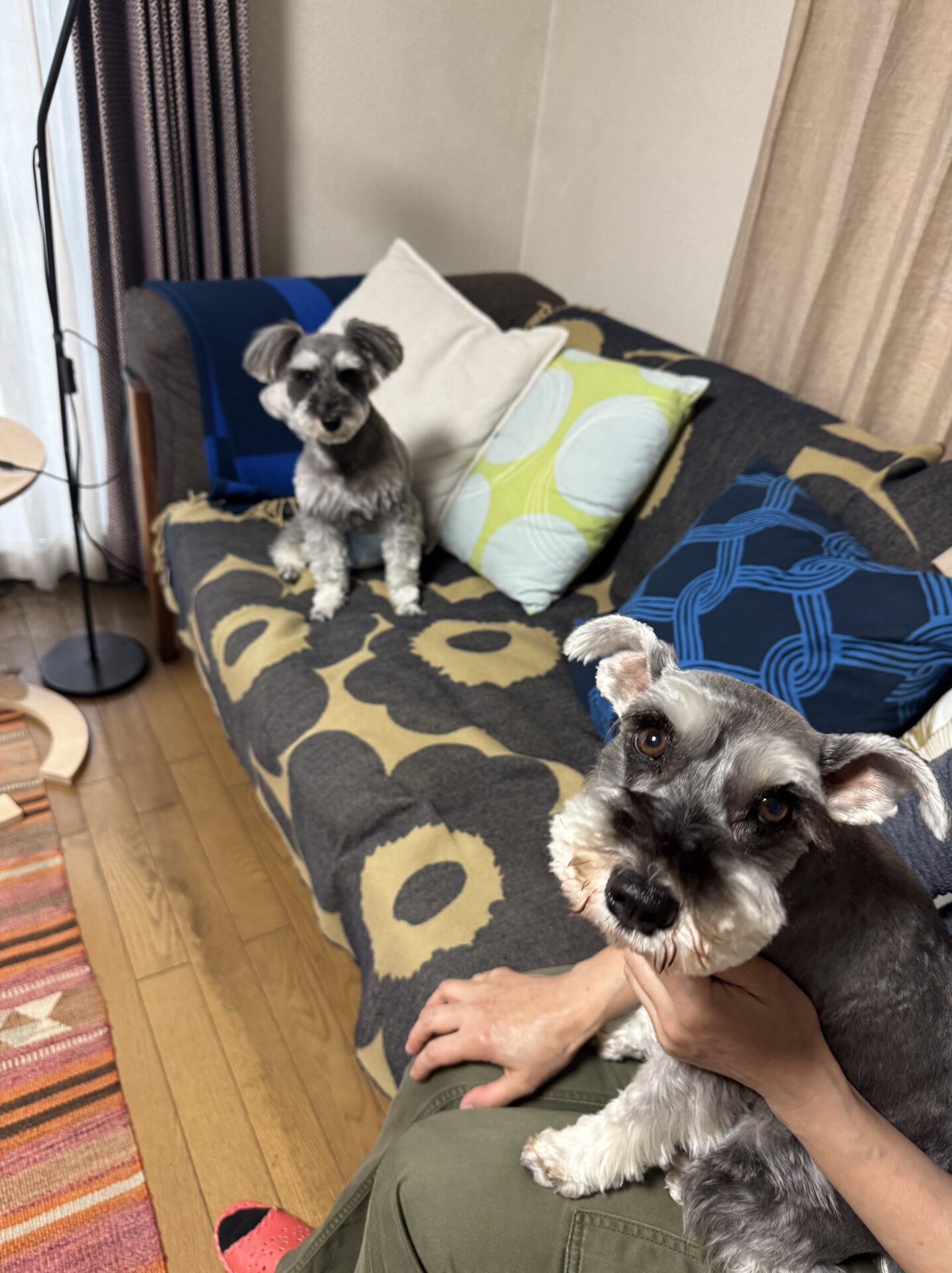 左にいるのは実家で飼っている愛犬エマです!