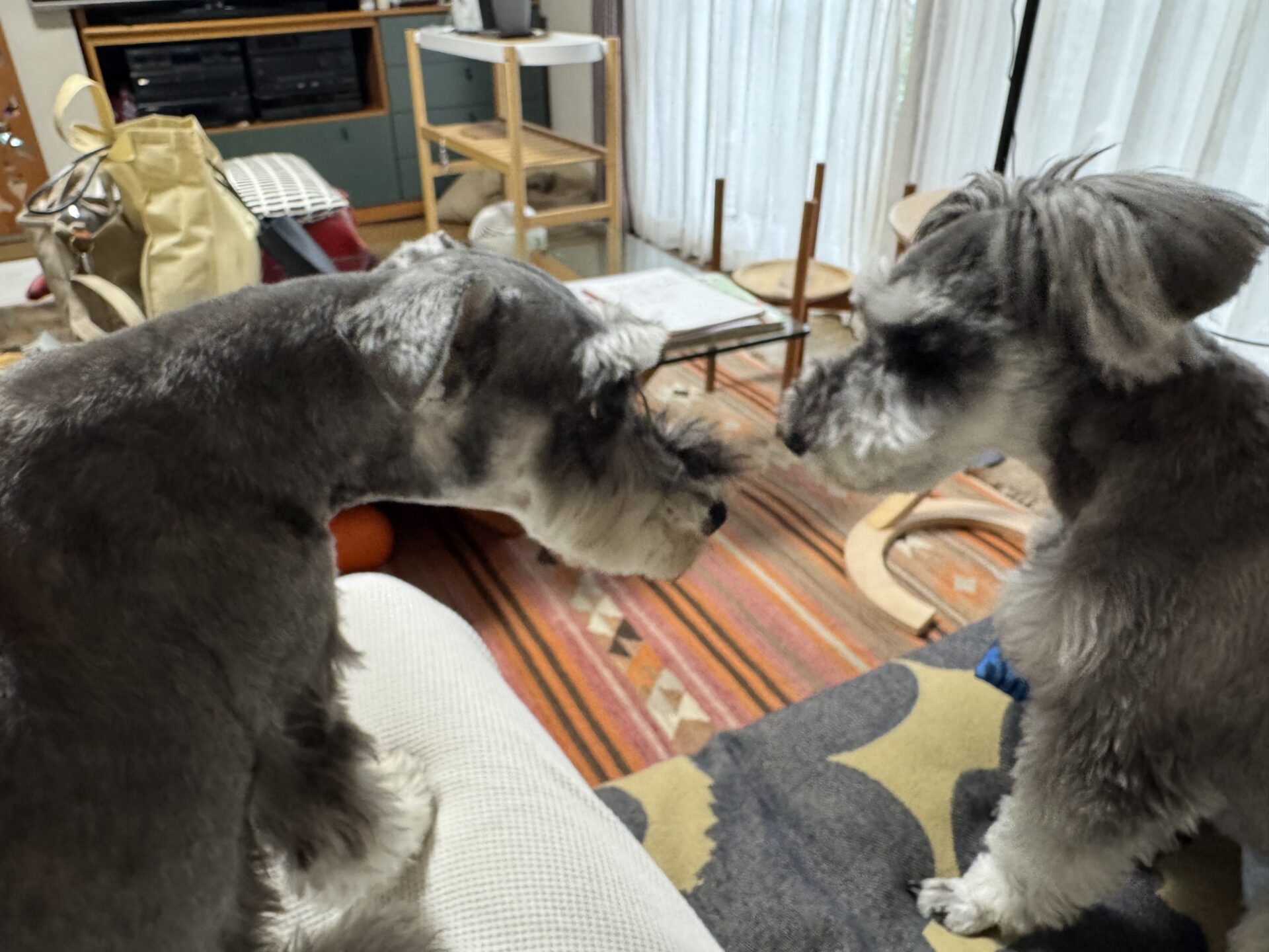 この2匹、仲があまり良くないのですが、最近少しづつこうやって近づいていくようになりました(^^;)