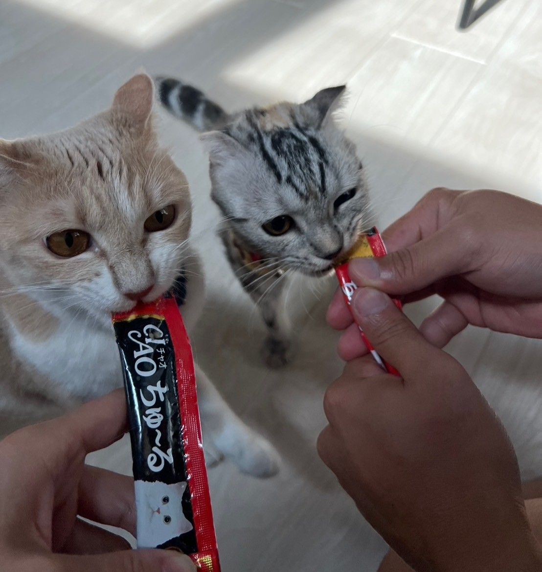冷蔵庫で冷やした"冷やしチュール"を食べるビッツとなると☆