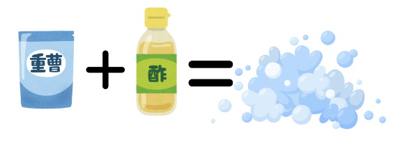 水を少なくした状態で重曹を振りかけ、そこに酢を注ぐと泡が発生して汚れを浮かせます。