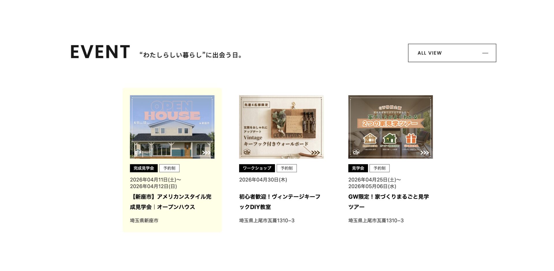 ▲続いて下に行くとイベントページに!最新のイベントが一目でわかる仕様です♪