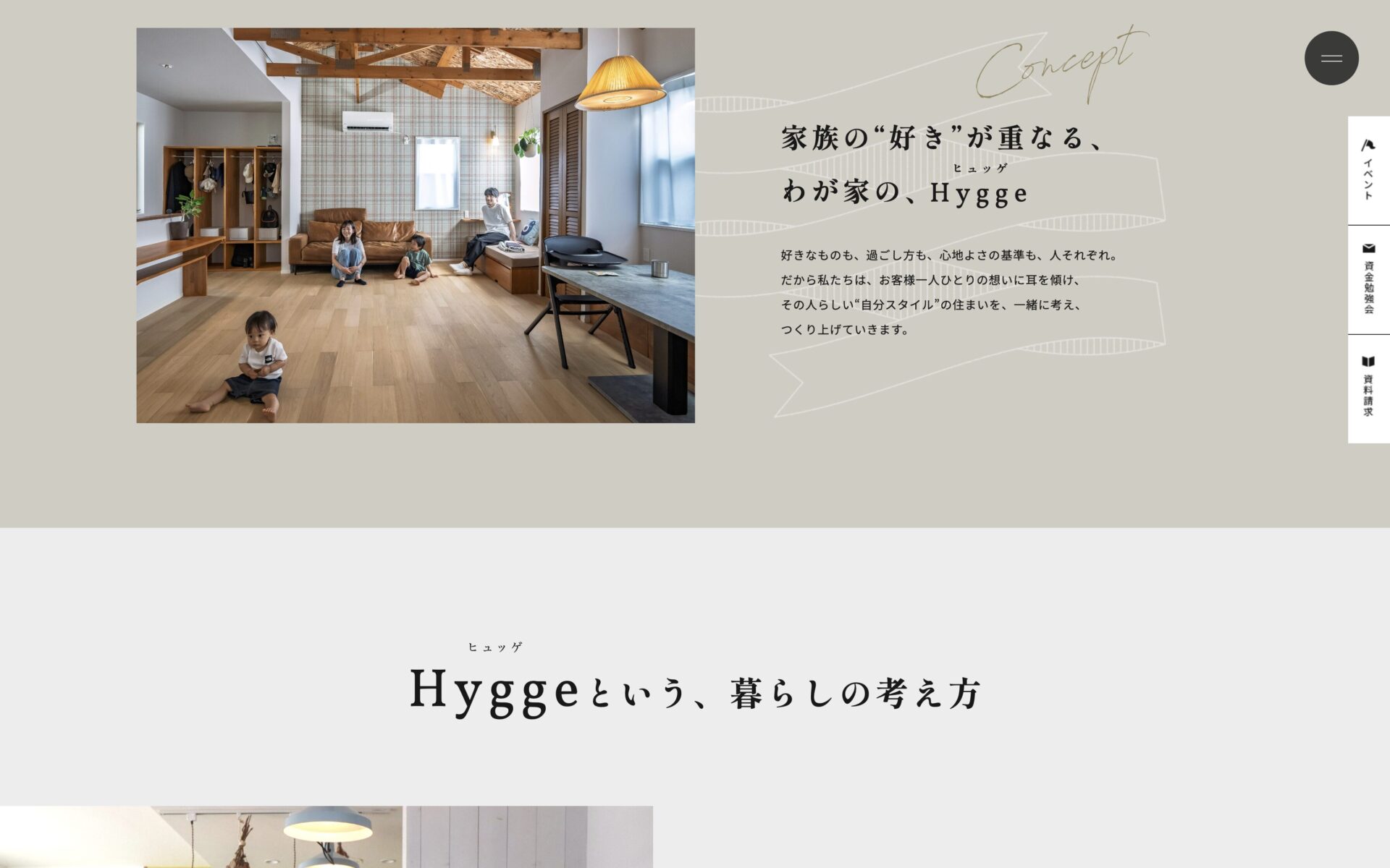 ▲TOPページはスライドになっていて暮らしがイメージできる施工事例を流しています^^