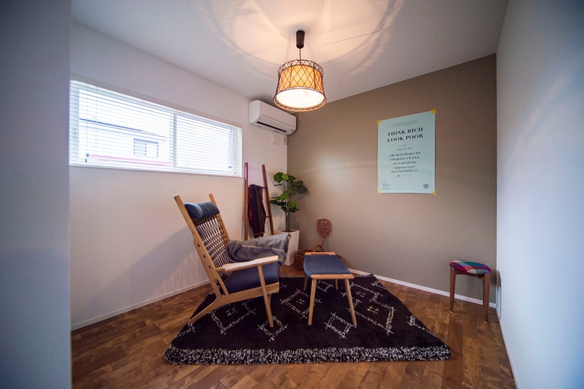 主寝室には書斎とウォークインクローゼット。 オープンな間取りの中でもプライベートな空間を確保しました。 居室も2部屋が確保。 ライフサイクルと共に可変させることができ平屋のメリットを生かしたフラットでコンパクトな動線が可能となります。