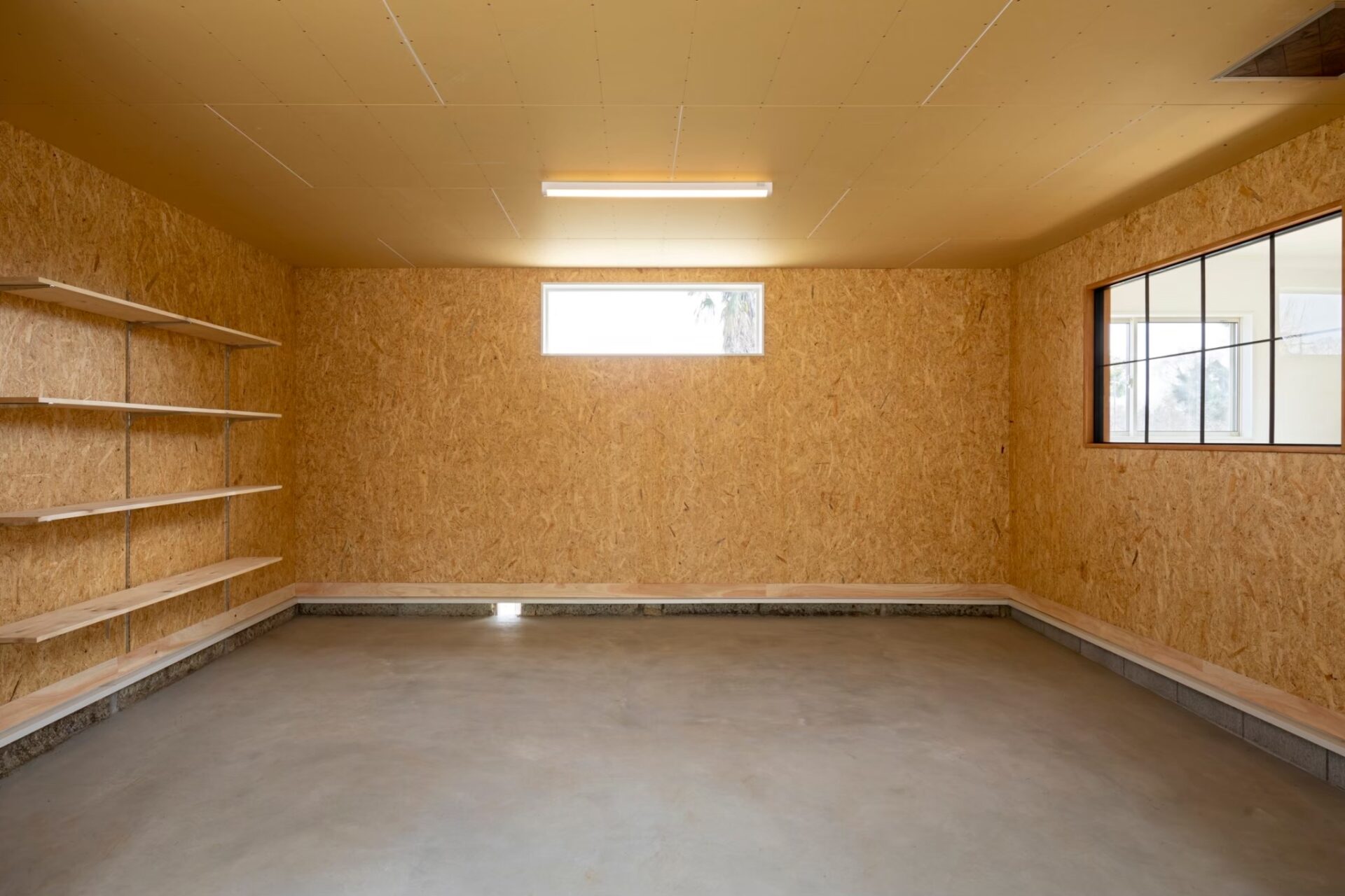 OSB合板で仕上げた大容量の収納スペース