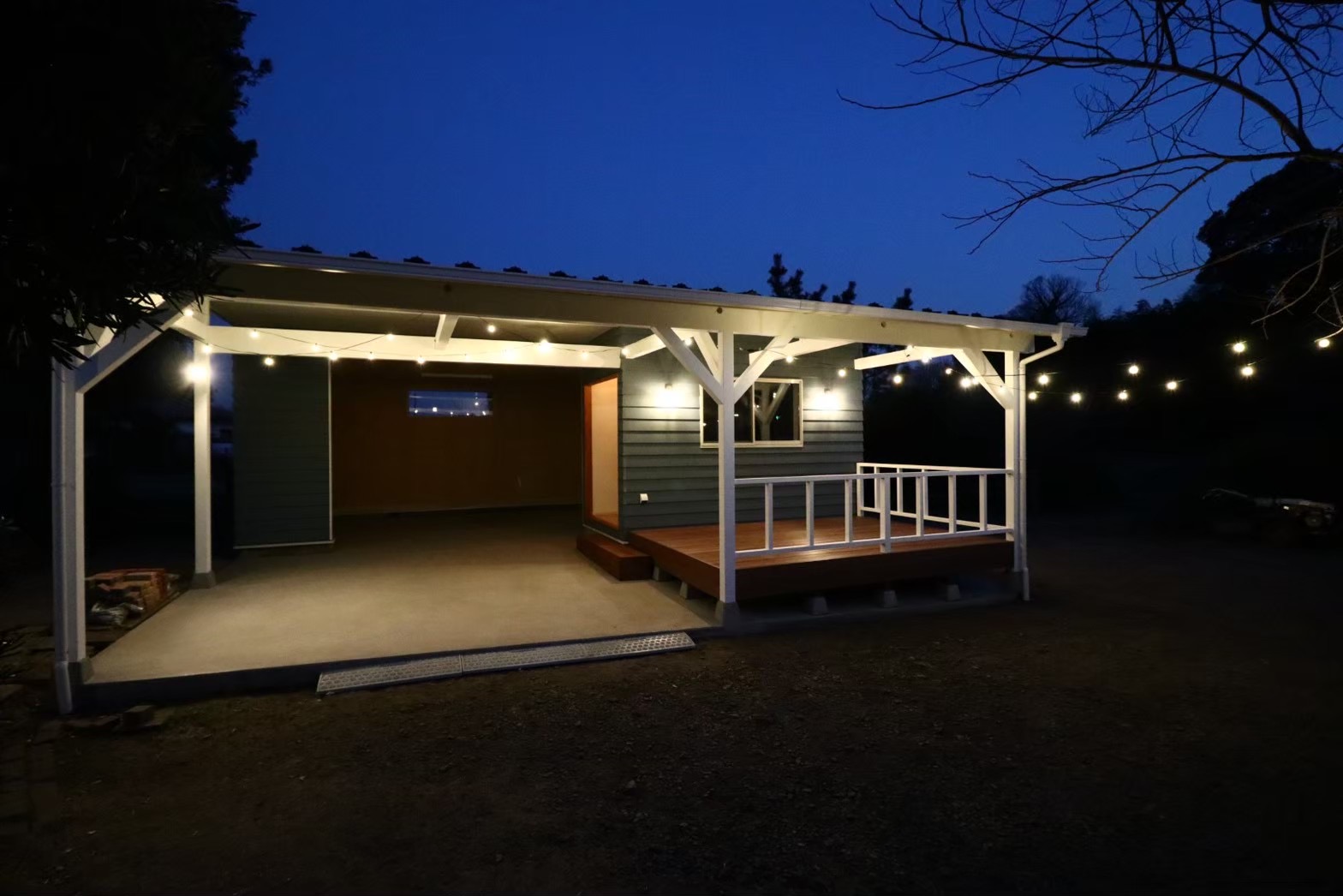 土間スペースで物干しやBBQも楽しめる自由な使い方