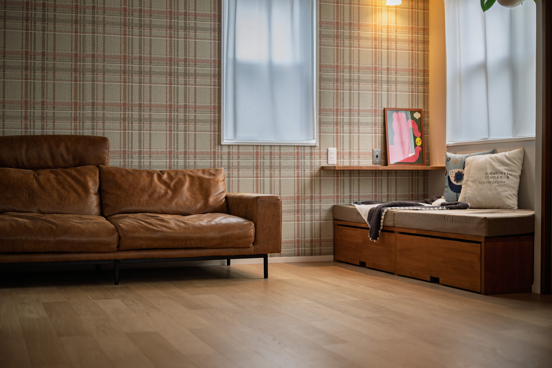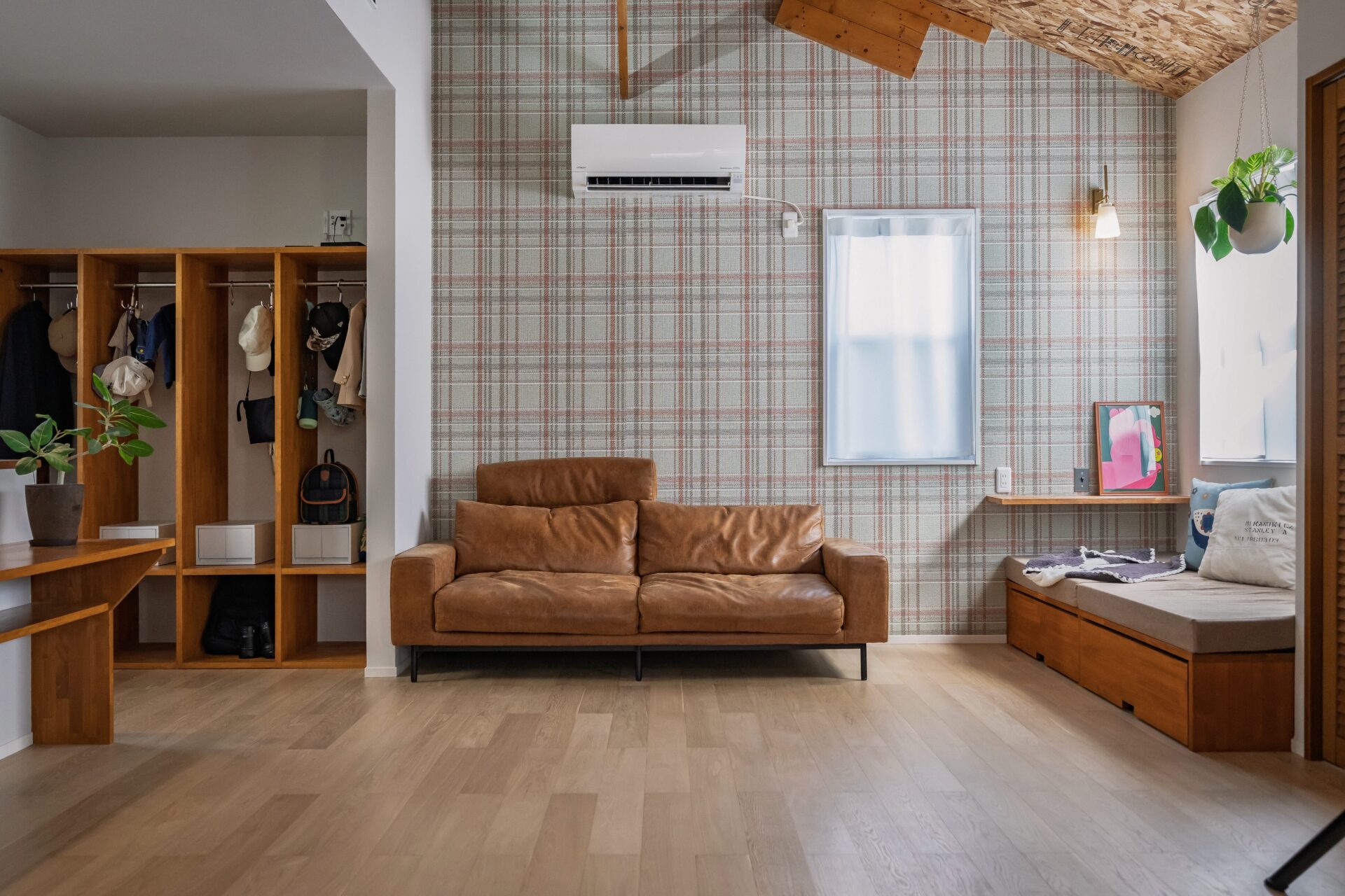 アクセントウォールが印象的なリビング