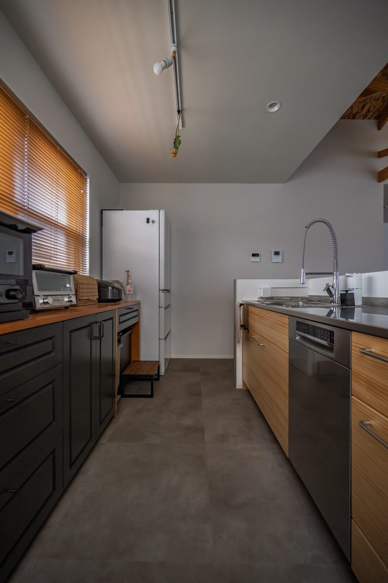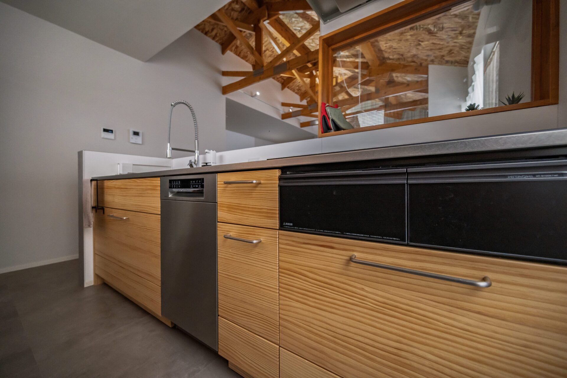 木目パネルが映えるキッチンデザイン